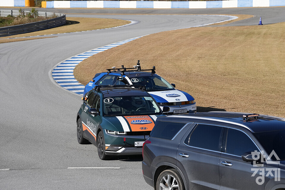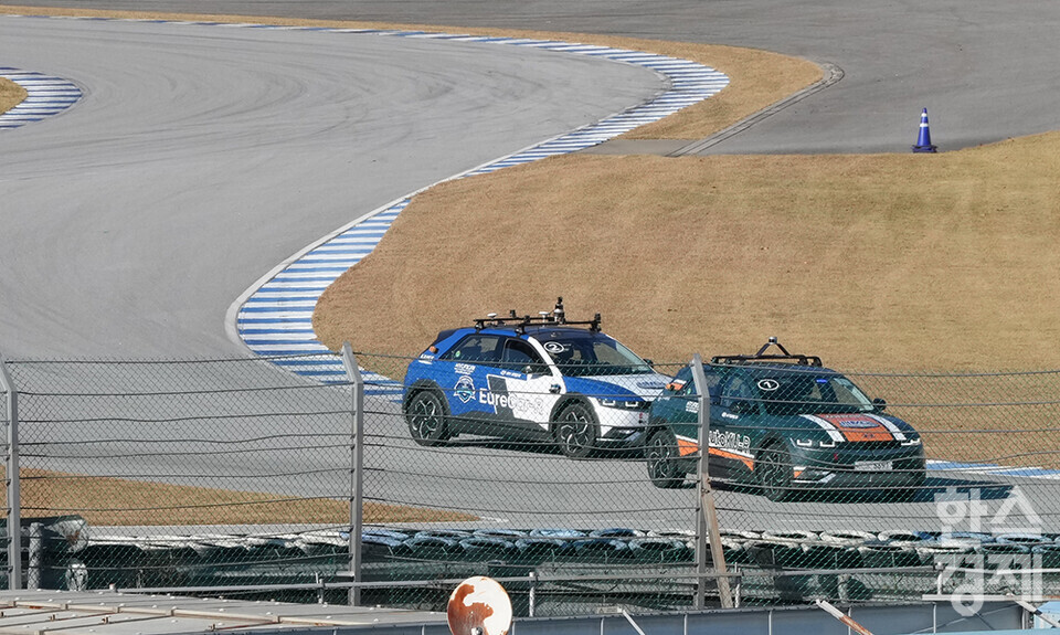 10일 오후 경기도 용인시 에버랜드 스피드웨이에서 '2023 자율주행 챌린지'가 열리고 있다. 카이스트 EureCar-R팀 차량과 건국대 AutoKU-R팀 차량이 레이스를 마친 후 이동하고 있다. /최대성 기자 dpdaesung@sporbiz.co.kr 2023.11.10.