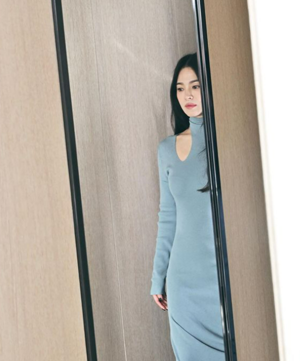 배우 송혜교는 최근 자신의 인스타그램에 별다른 문구 없이 사진 여러 장을 게재했다. 공개된 사진 속 송혜교는 드레스를 입은 채 늘씬한 보디라인을 뽐내고 있다. 송혜교는 여신같은 이목구비와 군살 하나 없는 몸매를 자랑했다.