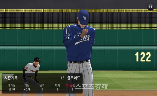 ▲ 이사만루 2015 KBO에서 구현된 삼성 라이온즈 선발투수 클로이드의 모습. 게임빌 제공