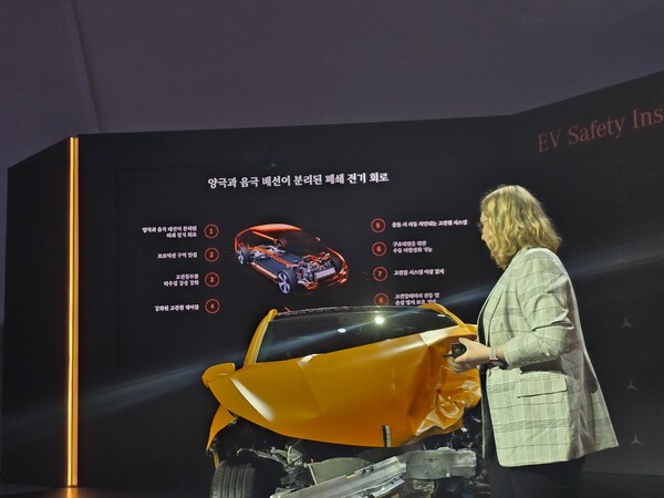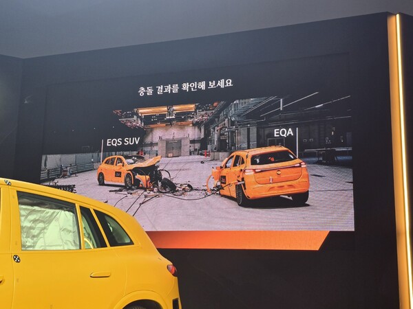 벤츠 코리아는 21일 서울 동대문디자인플라자(DDP) 아트홀에서 국내 최초로 테스트에 사용된 전기 SUV EQA와 EQS SUV 차량을 공개했다. 이 자리에는 독일 본사의 충돌 안전 엔지니어와 전기차 충돌시험 엔지니어가 참석해 당시 충돌 테스트와 벤츠의 안전성 기술에 대한 자세한 정보를 제공했다.