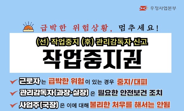 한편 우정사업본부는 지난 3월 우정사업 15대 작업안전수칙(안전 골든룰)을 시행하고 여름철에 발생하는 주요 사고사례 및 예방대책, 응급 조치요령 등의 교육을 진행했다. 본격적인 더위가 시작되는 내달부터는 직원들의 참여 및 인식 제고를 위한 안전보건 SNS 숏츠 공모전을 개최한다.