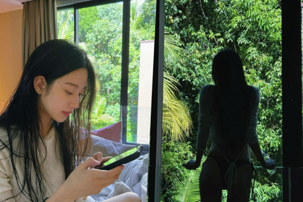 공개된 사진 속 문가영은 테라스 펜스를 잡고 바깥 풍경을 구경하고 있다. 역광 탓에 어두운 뒤태만 보이는 모습에도 슬렌더 S라인이 투영됐다.