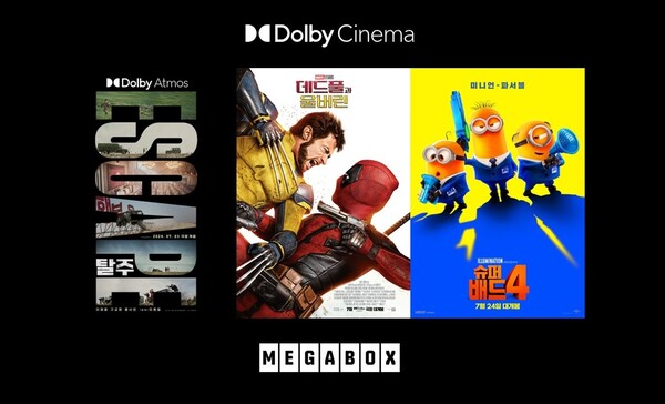 2일 메가박스 측은 ‘탈주’, ‘데드풀과 울버린’, ‘슈퍼배드 4’ 등 다양하게 구성된 7월 개봉작을 소개했다. 이번 개봉작들은 생생한 색감을 전달하는 ‘돌비 비전(Dolby Vision®)’과 몰입감 넘치는 경험을 제공하는 돌비의 최신 음향 기술 ‘돌비 애트모스(Dolby Atmos®)’가 적용된 돌비 시네마에서 만나볼 수 있다.