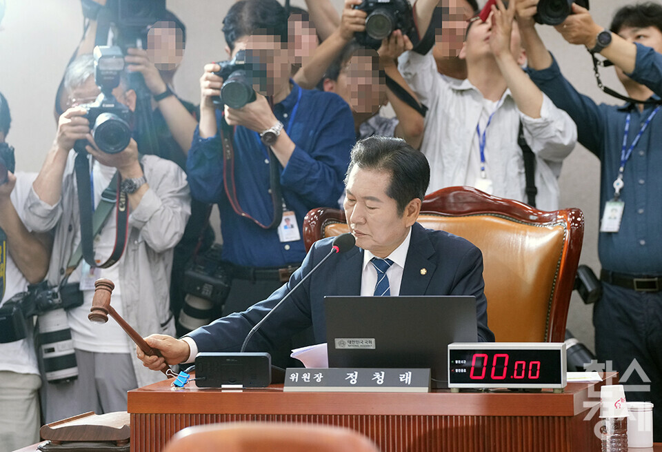 9일 서울 여의도 국회에서 법제사법위원회 전체회의가 열리고 있다. 정청래 법사위원장이 의사봉을 두드리고 있다. /최대성 기자 dpdaesung@sporbiz.co.kr 2024.07.09.