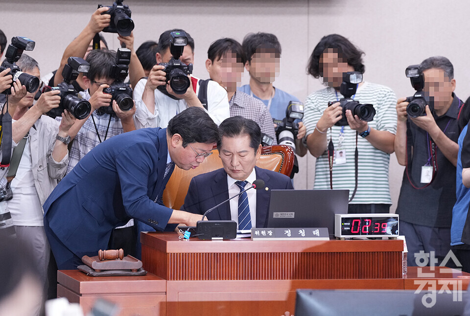 9일 서울 여의도 국회에서 법제사법위원회 전체회의가 열리고 있다. 이날 국민의힘 의원들이 정청래 법사위원장의 회의진행방식에 항의하며 퇴장한 가운데, 윤석열 대통령 탄핵소추안 즉각 발의 요청에 관한 청원 관련 청문회 실시계획서 채택의 건 관련 안건이 처리됐다. /최대성 기자 dpdaesung@sporbiz.co.kr 2024.07.09.