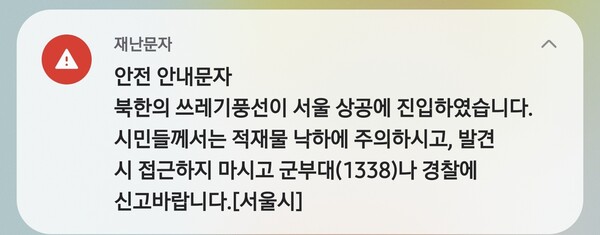 서울시도 이날 오전 10시 30분쯤 재난문자를 통해 서울 상공에 쓰레기 풍선이 진입했다고 시민들에게 알린바 있다.