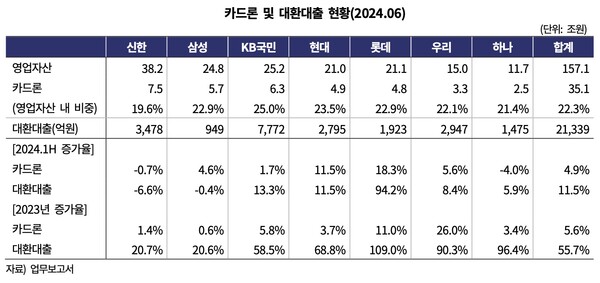 개별 기업으로 보면 KB국민카드가 카드론 취급 비중이 가장 높으며, 롯데카드와 우리카드는 2023년부터 카드론을 적극적으로 취급하고 있다. 올해 들어 삼성카드와 현대카드도 카드론 취급을 확대하고 있다. 이에 카드사들은 리스크관리책도 병행하고 있으나 향후 대손비용 부담의 가능성도 배제할 수 없다.