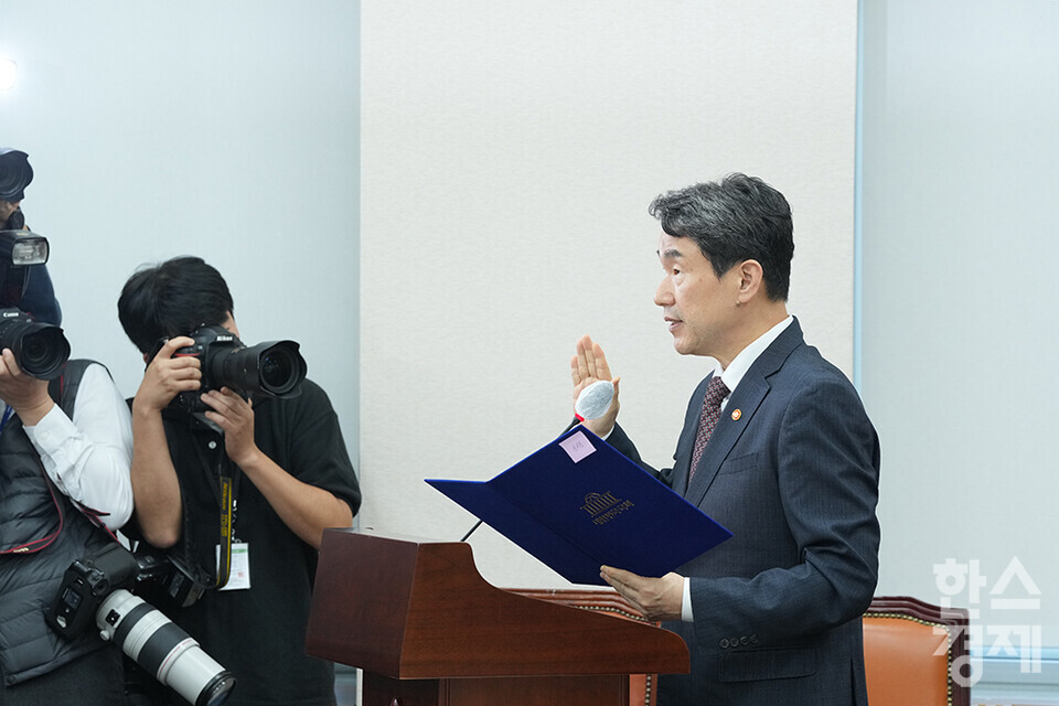 이주호 사회부총리 겸 교육부 장관이 8일 서울 여의도 국회에서 열린 교육위원회 국정감사에 출석해 업무보고를 하고 있다. /최대성 기자 dpdaesung@sporbiz.co.kr 2024.10.08.
