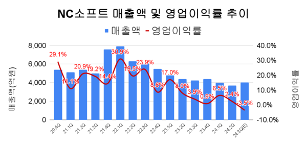 엔씨소프트는 올해 3분기 연결 기준 매출 4019억원으로, 전년 동기 대비 5% 감소했다. 영업손실은 143억원을 기록했다. 신작 출시와 라이브 게임 대규모 업데이트로 인한 마케팅비 증가 등 영업비용 증가의 영향이다. 지난 8월 호연을 출시하면서 마케팅 비중을 늘리는 등 홍보에 박차를 가했지만 흥행에는 실패했다는 평가다.
