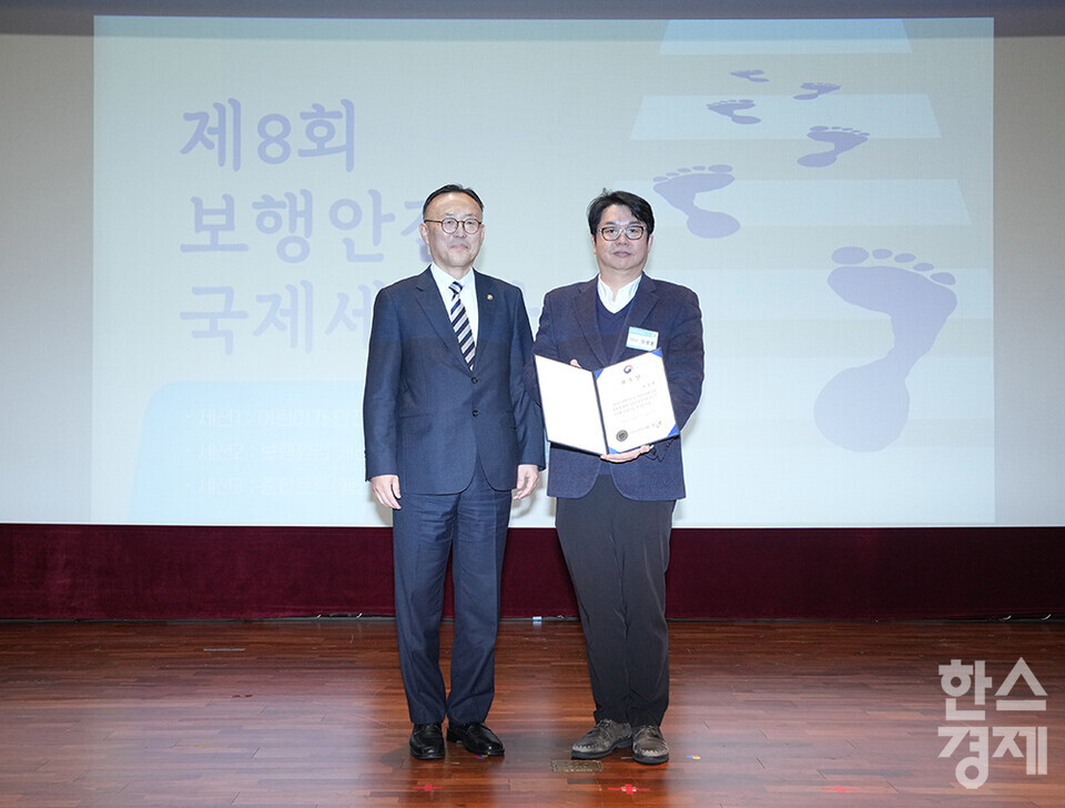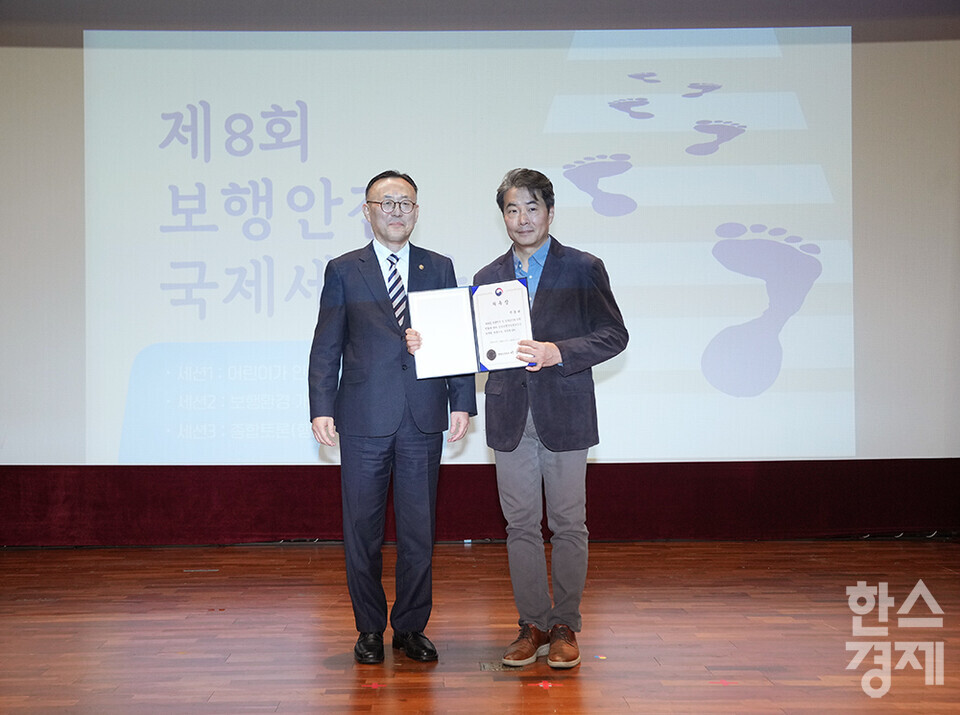 11일 서울 중구 포스트타워에서 행정안전부가 주최하고 건축공간연구원, 한국교통연구원, 손해보험협회가 주관하는 제8회 보행안전국제세미나가 열리고 있다. 행정안전부 이한경 재난안전관리본부장(왼쪽)이 중앙보행안전편의증진위원회 위원 위촉장을 수여한 후 기념촬영을 하고 있다. /최대성 기자 dpdaesung@sporbiz.co.kr 2024.11.11.