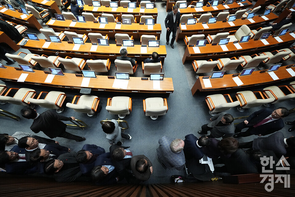 14일 오후 서울 여의도 국회에서 제419회 국회(임시회) 제4차 본회의가 열리고 있다. 국민의힘 의원들이 윤석열 대통령 탄핵소추안에 투표한 후 자리로 돌아가고 있다. /최대성 기자 dpdaesung@sporbiz.co.kr 2024.12.14.