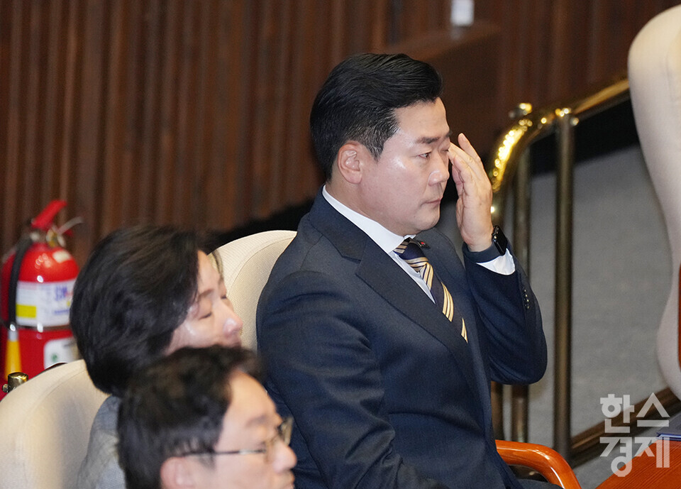 14일 오후 서울 여의도 국회 제419회 국회(임시회) 제4차 본회의에서 윤석열 대통령 탄핵소추안이 재석 300명 중 찬성 204명, 반대 85명, 기권 3명, 무효 8명으로 가결된 후 찬성표를 던진 국민의힘 김상욱 의원이 자리에서 일어나지 못하고 있다. /최대성 기자 dpdaesung@sporbiz.co.kr 2024.12.14.