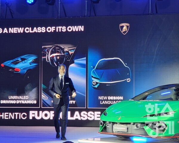 오토모빌리 람보르기니는 지난 6일 서울 광진구 능동에 위치한 파이팩토리 스튜디오에서 '우라칸' 후속 모델 '테메라리오'를 국내 시장에 처음으로 공개했다. 지난해 8월 '몬테레이 카위크'에서 글로벌 첫선을 보인 지 6개월 만이다. 이날 행사에는 스테판 윙켈만 오토모빌리 람보르기니 최고경영자(CEO)와 프란체스코 스카르다오니 아태지역 총괄 등 람보르기니 관계자와 고객, 미디어 등 500여명이 참석한 가운데 진행됐다.