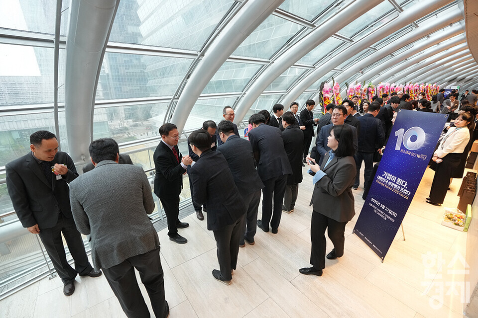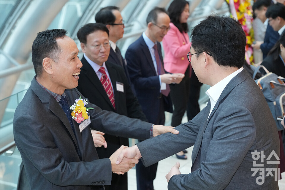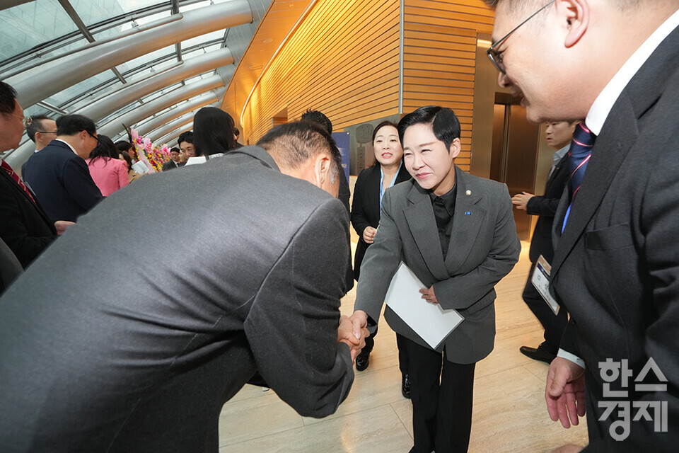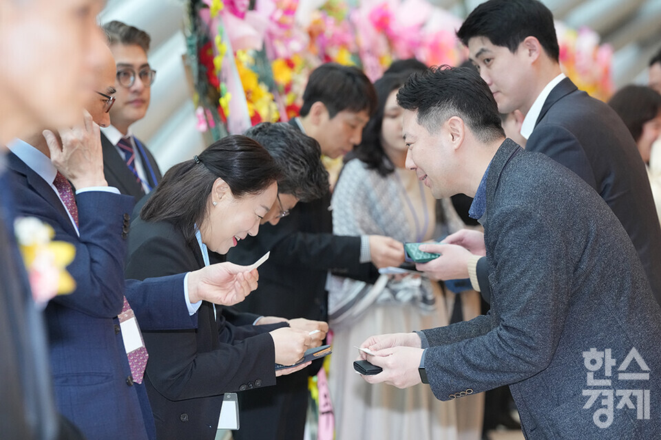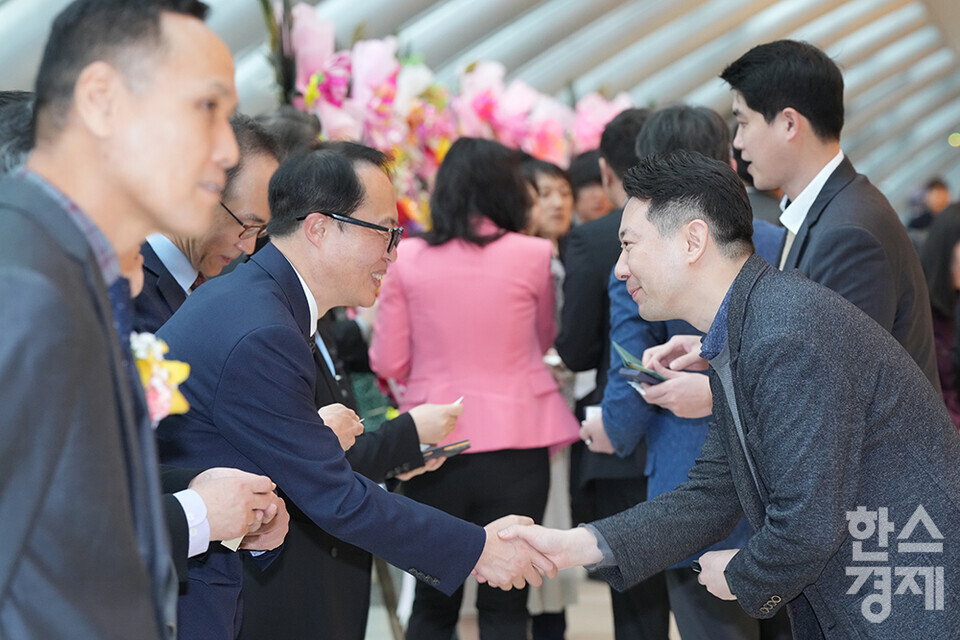 27일 오전 서울 여의도 FKI타워에서 한스경제 창간 10주년 기념 ‘체인지 코리아(Change Korea) 2025 포럼’이 열리고 있다. 많은 내빈들이 포럼 행사장을 찾아 인사를 나누고 있다. /최대성 기자 dpdaesung@sporbiz.co.kr 2025.03.27.