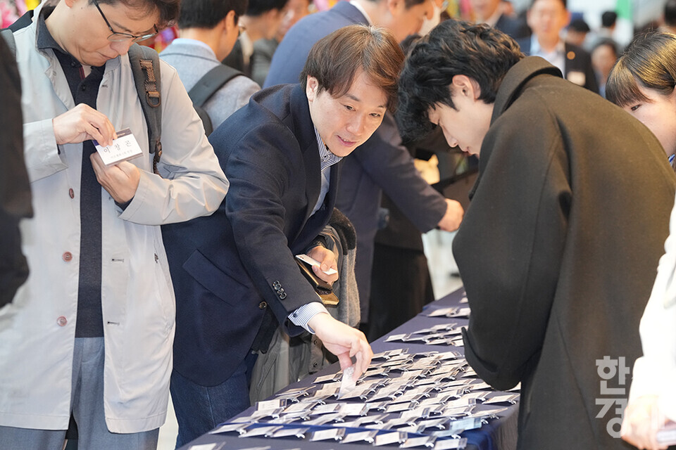 27일 오전 서울 여의도 FKI타워에서 한스경제 창간 10주년 기념 ‘체인지 코리아(Change Korea) 2025 포럼’이 열리고 있다. 내빈들이 명찰을 착용하고 있다. /최대성 기자 dpdaesung@sporbiz.co.kr 2025.03.27.