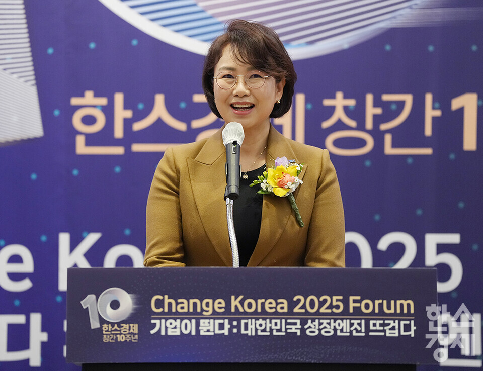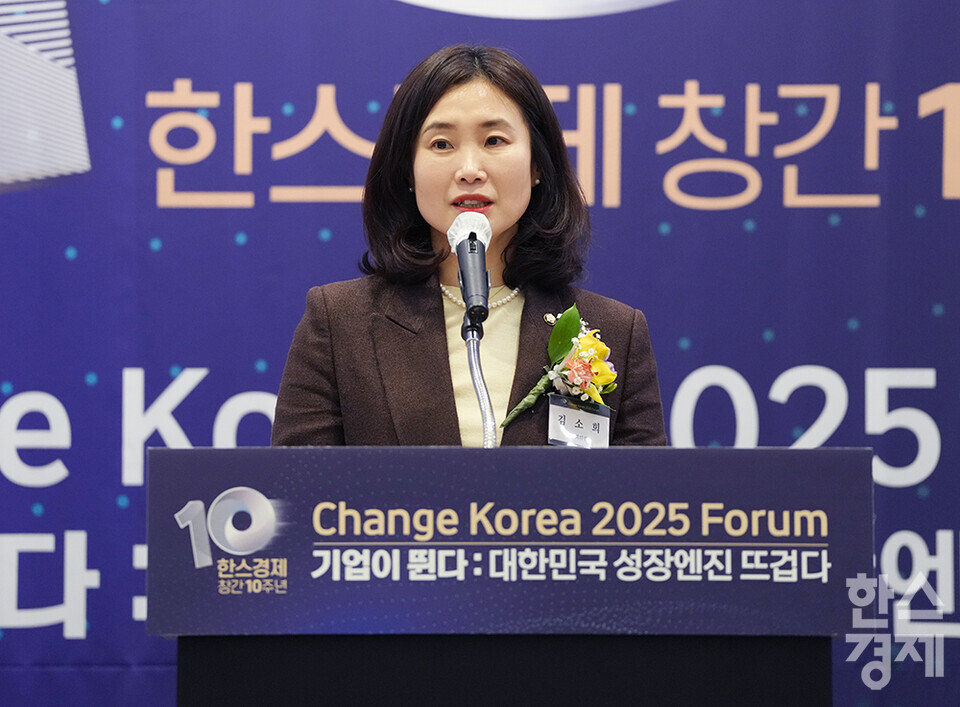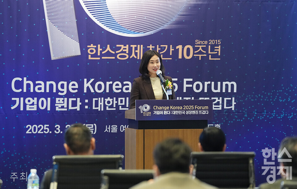 김소희 국민의힘 의원이 27일 오전 서울 여의도 FKI타워에서 개최된 한스경제 창간 10주년 기념 ‘체인지 코리아(Change Korea) 2025 포럼’에 참석해 축사를 하고 있다. /최대성 기자 dpdaesung@sporbiz.co.kr 2025.03.27.