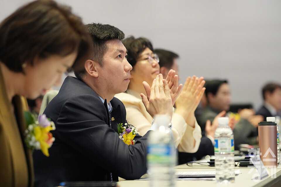 한준희 대한축구협회 부회장이 27일 오전 서울 여의도 FKI타워에서 개최된 한스경제 창간 10주년 기념 ‘체인지 코리아(Change Korea) 2025 포럼’에 참석해 강연을 듣고 있다. /최대성 기자 dpdaesung@sporbiz.co.kr 2025.03.27.