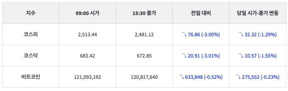 코스피 시가총액 상위종목인 삼성전자(-3.99%), SK하이닉스(-4.32%), LG에너지솔루션(-6.04%) 모두 하락했다.