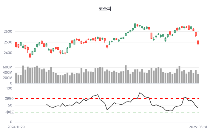 금일 코스피와 코스닥 모두 올해 상승분을 반납했다. 미국의 상호관세 공포와 더불어, 공매도 재개 등 외인들의 순매도가 강하게 동반되며, 하락 마감했다. 특히 유가증권시장에서의 외인 순매도는 약 1조 5천억원을 돌파했다.