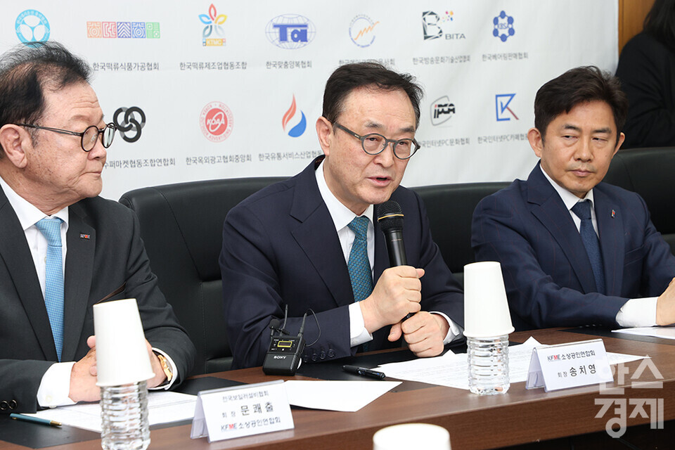 2일 오후 서울 영등포구 소상공인연합회에서 더불어민주당-소상공인연합회 민생경제 현장 간담회가 열리고 있다. 송치영 소상공인연합회 회장이 모두발언을 하고 있다. /최대성 기자 dpdaesung@sporbiz.co.kr 2025.04.02.