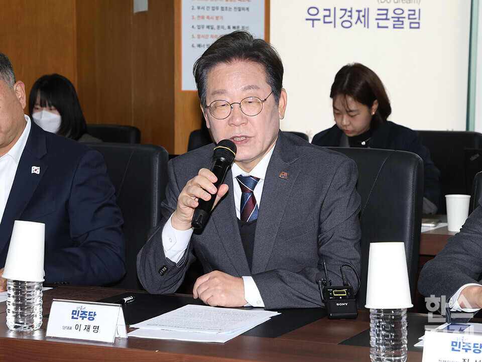 2일 오후 서울 영등포구 소상공인연합회에서 더불어민주당-소상공인연합회 민생경제 현장 간담회가 열리고 있다. 이재명 더불어민주당 대표가 모두발언을 하고 있다. /최대성 기자 dpdaesung@sporbiz.co.kr 2025.04.02.