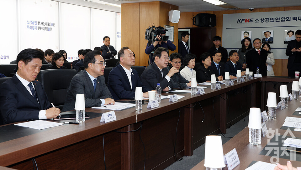 [한스경제=최대성 기자] 2일 오후 서울 영등포구 소상공인연합회에서 더불어민주당-소상공인연합회 민생경제 현장 간담회가 열리고 있다.