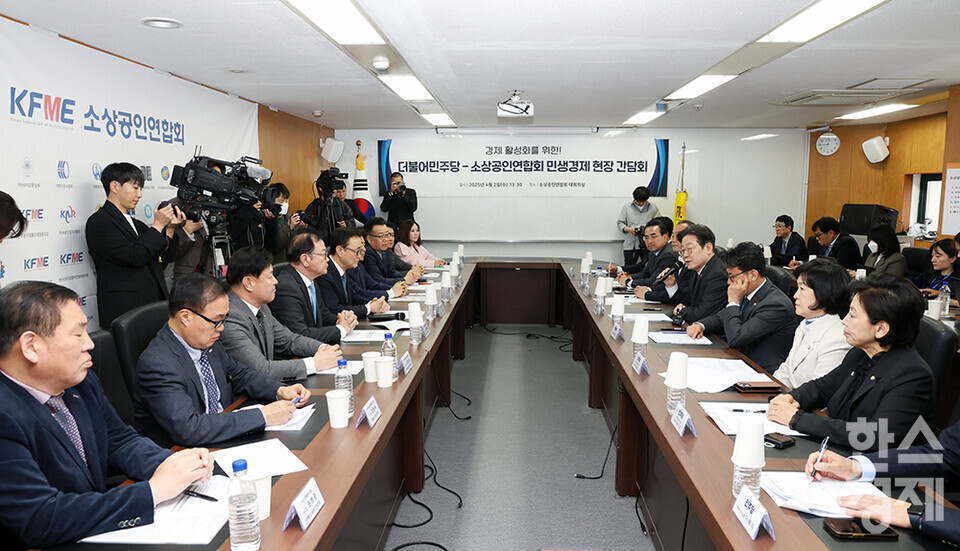 2일 오후 서울 영등포구 소상공인연합회에서 더불어민주당-소상공인연합회 민생경제 현장 간담회가 열리고 있다. /최대성 기자 dpdaesung@sporbiz.co.kr 2025.04.02.