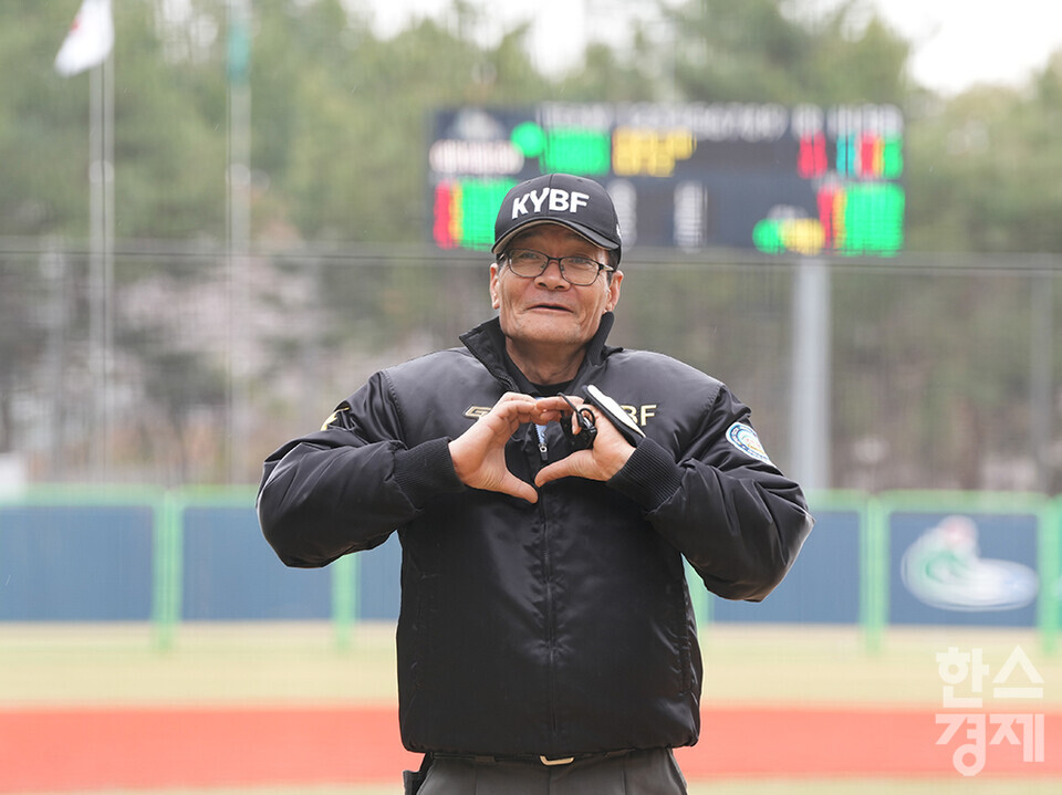 14일 충청남도 서천군 레포츠공원 야구장에서 한국스포츠경제와 한스경제가 주최하고 대한유소년야구연맹이 주관하는 '제9회 한국컵 전국유소년아구대회'가 열렸다. 이창선 심판이 카메라를 보고 포즈를 취하고 있다. /서천=최대성 기자 dpdaesung@sporbiz.co.kr 2025.04.14.