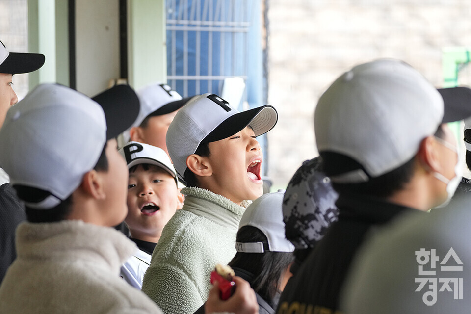 14일 충청남도 서천군 레포츠공원 야구장에서 한국스포츠경제와 한스경제가 주최하고 대한유소년야구연맹이 주관하는 '제9회 한국컵 전국유소년아구대회'가 열렸다. 유소년(청룡)리그 그룹B 남양주야놀 유소년야구단 선수들이 아산시와의 경기서 응원을 하고 있다. /서천=최대성 기자 dpdaesung@sporbiz.co.kr 2025.04.14.