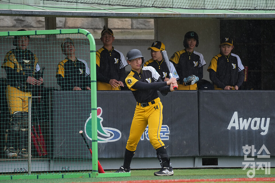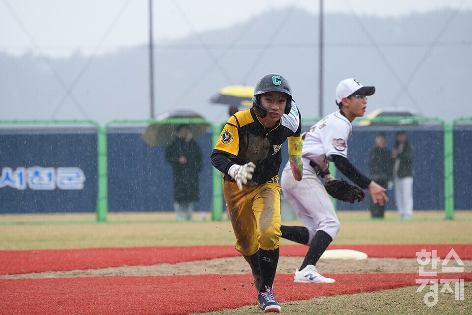 14일 충청남도 서천군 레포츠공원 야구장에서 한국스포츠경제와 한스경제가 주최하고 대한유소년야구연맹이 주관하는 '제9회 한국컵 전국유소년아구대회'가 열렸다. 유소년(청룡)리그 그룹B 남양주야놀 유소년야구단과 아산시와의 경기가 우중에 펼쳐지고 있다. /서천=최대성 기자 dpdaesung@sporbiz.co.kr 2025.04.14.