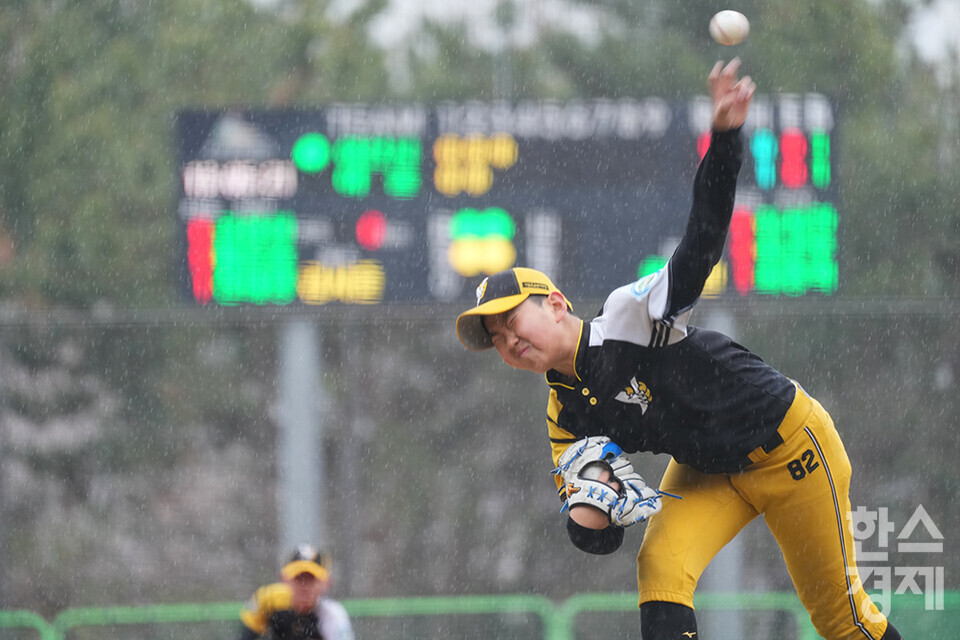 14일 충청남도 서천군 레포츠공원 야구장에서 한국스포츠경제와 한스경제가 주최하고 대한유소년야구연맹이 주관하는 '제9회 한국컵 전국유소년아구대회'가 열렸다. 유소년(청룡)리그 그룹B 남양주야놀 유소년야구단 황현민 선수가 아산시와의 경기서 역투하고 있다. /서천=최대성 기자 dpdaesung@sporbiz.co.kr 2025.04.14.
