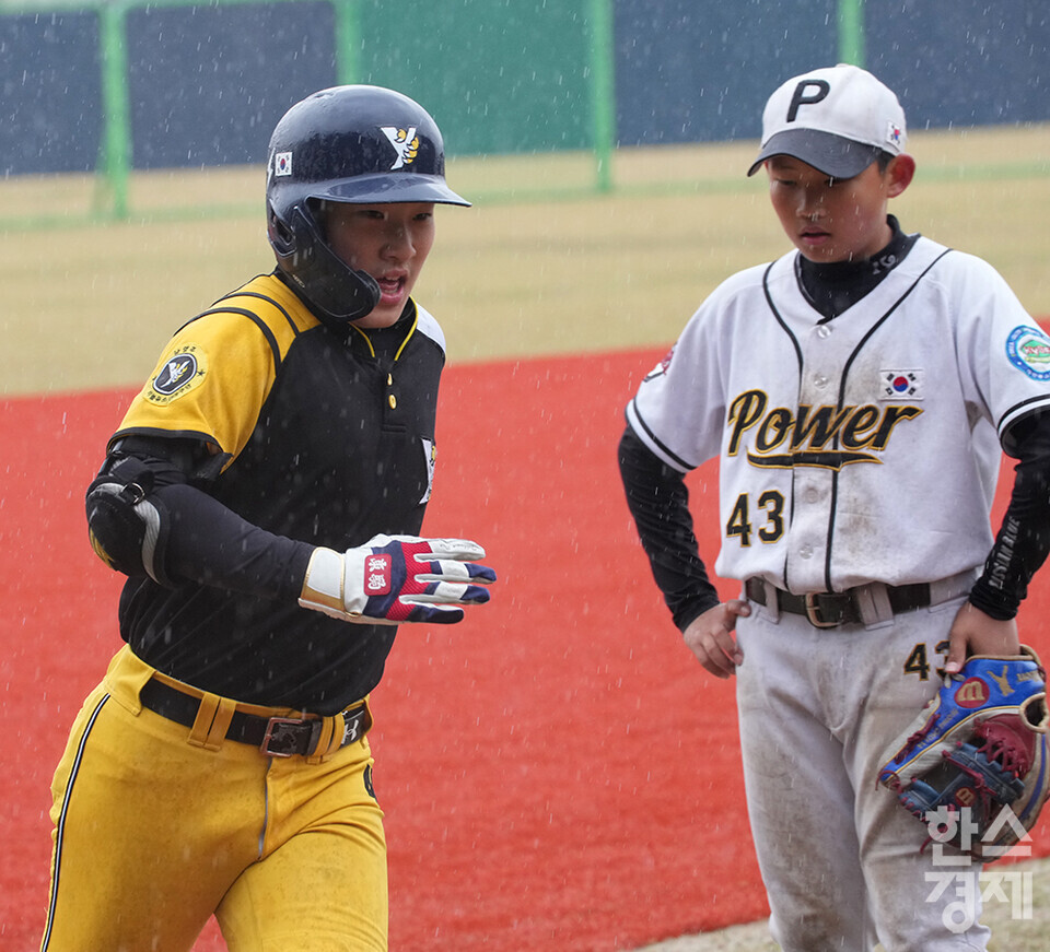 14일 충청남도 서천군 레포츠공원 야구장에서 한국스포츠경제와 한스경제가 주최하고 대한유소년야구연맹이 주관하는 '제9회 한국컵 전국유소년아구대회'가 열렸다. 유소년(청룡)리그 그룹B 남양주야놀 유소년야구단 이새찬 선수가 아산시와의 경기 3회말 1사 1,2루 상황서 3점 홈런을 터뜨린 후 다이아몬드를 돌고 있다. /서천=최대성 기자 dpdaesung@sporbiz.co.kr 2025.04.14.