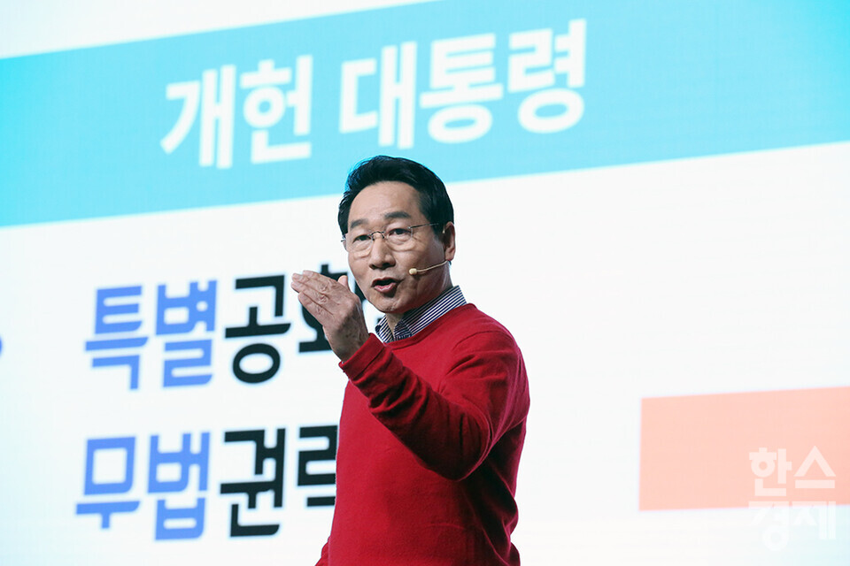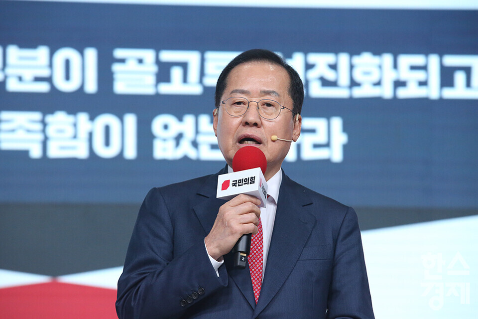 18일 오후 서울 강서구 ASSA아트홀에서 '제21대 대통령후보자 국민의힘 1차 경선 후보자 비전대회' 가 열리고 있다. 홍준표 경선 후보가 비전발표를 하고 있다. /최대성 기자 dpdaesung@sporbiz.co.kr 2025.04.18.