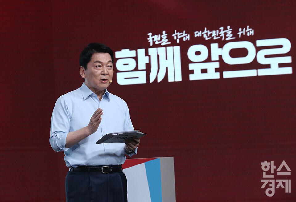 18일 오후 서울 강서구 ASSA아트홀에서 '제21대 대통령후보자 국민의힘 1차 경선 후보자 비전대회' 가 열리고 있다. 안철수 경선 후보가 비전발표를 하고 있다. /최대성 기자 dpdaesung@sporbiz.co.kr 2025.04.18.