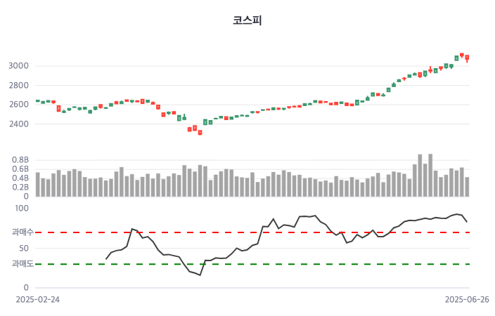 [한스경제=김도현 기자] 26일 코스피는 전거래일보다 -0.92% 하락 마감했다. 한국거래소에 의하면 코스피 지수는 이날 오전 09시 3108.34에 개장해 장중 3113.03을 고점 기록한 후 오후 3시 30분 3079.56로 하락 마감했다. 전거래일 대비 28.69포인트(-0.92%) 하락했으며, 이날 시작가 대비해서는 28.78포인트(-0.93%) 하락한 것이다.