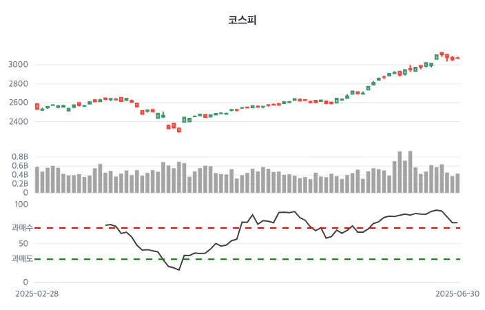 [한스경제=김도현 기자] 30일 코스피는 전거래일보다 0.52% 상승 마감했다. 한국거래소에 의하면 코스피 지수는 이날 오전 09시 3072.75에 개장해 장중 3086.0을 고점 기록한 후 오후 3시 30분 3071.70로 상승 마감했다. 전거래일 대비 15.76포인트(0.52%) 상승했으며, 이날 시작가 대비해서는 1.05포인트(-0.03%) 하락한 것이다.