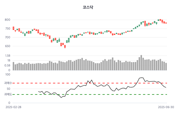 코스닥 지수는 이날 783.53에 출발해 784.65을 고점으로 기록한 뒤 781.5로 거래를 마쳤다. 전거래일 대비 0.06포인트(-0.01%) 하락했고, 시작가보다는 2.03포인트(-0.26%) 하락했다.