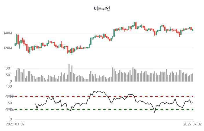 한편 비트코인 가격은 상승 중이다. 코인마켓캡에 의하면, 비트코인은 이날 오후 3시 30분 현재 145,181,936원에 거래 중이다. 145,181,936원을 최고점을 찍고 0시 대비해서는 511,504원(0.35%) 상승한 가격이다.