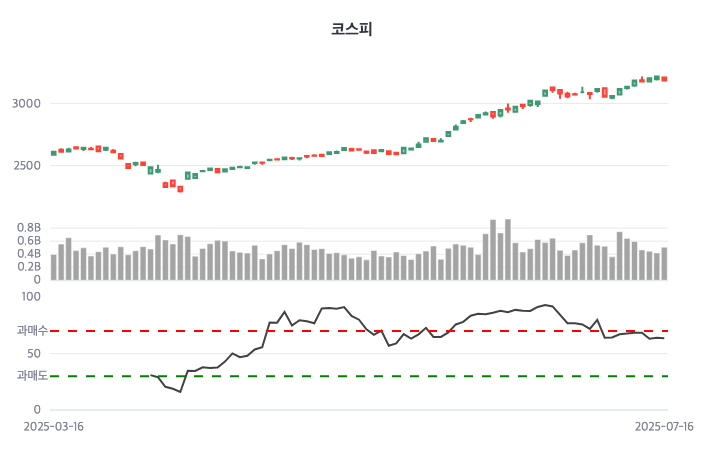 [한스경제=김도현 기자] 16일 코스피는 전거래일보다 -0.90% 하락 마감했다. 한국거래소에 의하면 코스피 지수는 이날 오전 09시 3207.48에 개장해 장중 3209.2를 고점 기록한 후 오후 3시 30분 3186.38로 하락 마감했다. 전거래일 대비 28.90포인트(-0.90%) 하락했으며, 이날 시작가 대비해서는 21.10포인트(-0.66%) 하락한 것이다.