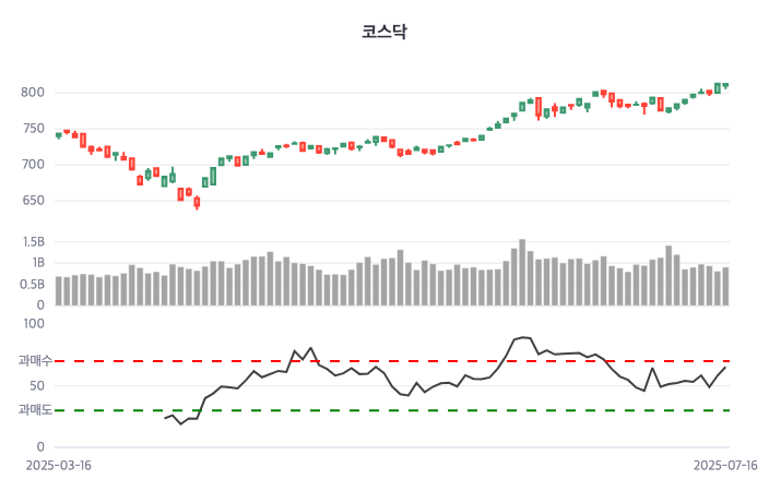 코스닥 지수는 이날 810.09에 출발해 813.19를 고점으로 기록한 뒤 812.23로 거래를 마쳤다. 전거래일 대비 0.65포인트(-0.08%) 하락했고, 시작가보다는 2.14포인트(0.26%) 상승했다.