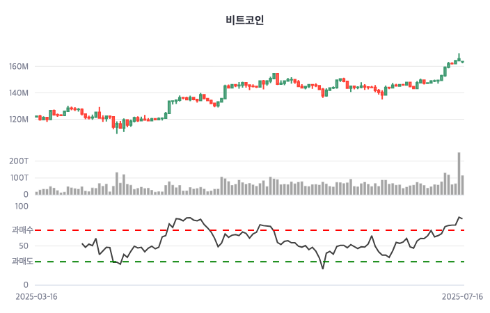 한편 비트코인 가격은 하락 중이다. 코인마켓캡에 의하면, 비트코인은 이날 오후 3시 30분 현재 163,637,680원에 거래 중이다. 163,771,728원을 최고점으로 찍고 0시 대비해서는 2,115,776원(-1.28%) 하락한 가격이다.