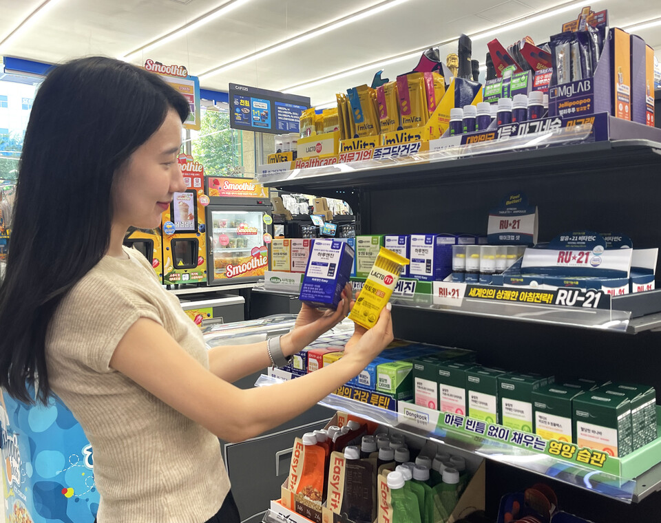세븐일레븐도 영양제 등 건강식품을 판매해 오고 있다. 지난해에는 알약과 액상을 한 번에 섭취하는 이중제형 '멀티비타12부스터샷'을 출시했다. 일반적인 20ml 비타민 상품보다 용량을 25% 늘리고 비타민 12종 등을 담았다. 현재 이 상품은 세븐일레븐의 건강/이너뷰티 카테고리에서 1위를 차지하고 있다. 올해 세븐일레븐의 건강 관련 식품 판매량도 전년 대비 70% 증가해 높은 수요를 기록했다.