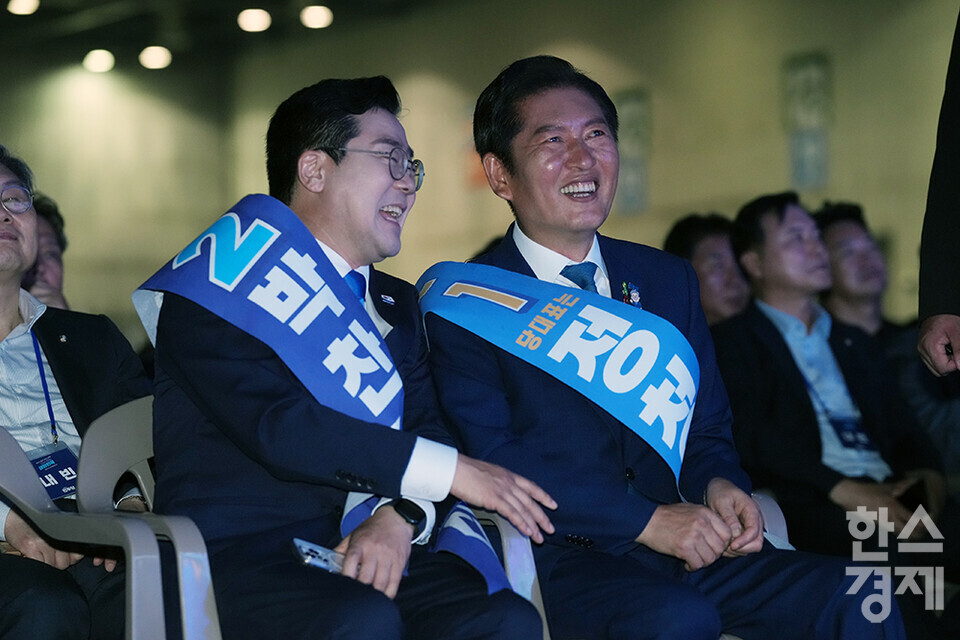 | 한스경제=최대성 기자 | 2일 오후 경기도 고양시 킨텍스에서 더불어민주당 제2차 임시전국당원대회가 열리고 있다. 이날 정청래 후보가 당 대표로 황명선 의원이 최고위원으로 각각 선출됐다.