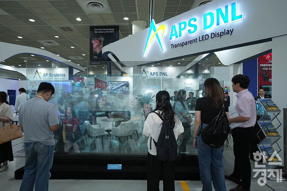 최신 디스플레이 기술을 한자리에서 볼 수 있는 '2025 한국디스플레이산업전시회(K-Display 2025)'가 7일 서울 강남구 코엑스에서 열리고 있다. 관람객들이 APS DNL 부스에 마련된 디스플레이 전시물을 감상하고 있다. /최대성 기자 dpdaesung@sporbiz.co.kr 2025.08.07.