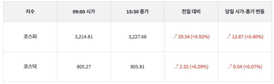 | 한스경제=김도현 기자 | 7일 코스피는 전거래일보다 0.92% 상승 마감했다. 한국거래소에 의하면 코스피 지수는 이날 오전 09시 3214.81에 개장해 장중 3223.26을 고점 기록한 후 오후 3시 30분 3227.68로 상승 마감했다. 전거래일 대비 29.54포인트(0.92%) 상승했으며, 이날 시작가 대비해서는 12.87포인트(0.40%) 상승한 것이다.
