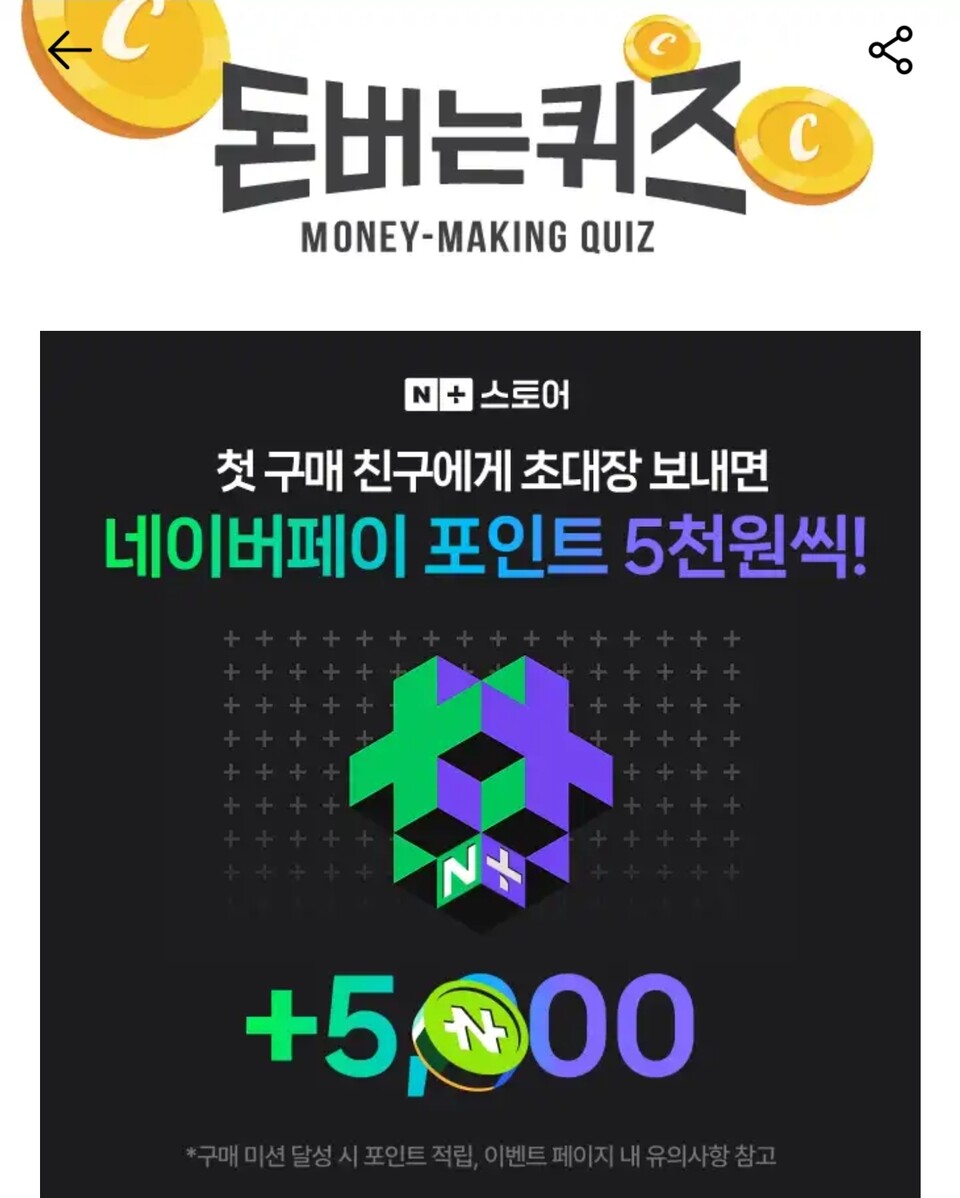 네이버플러스스토어 캐시워크돈버는퀴즈 정답자에게는 최대 1만캐시 포인트가 제공된다.