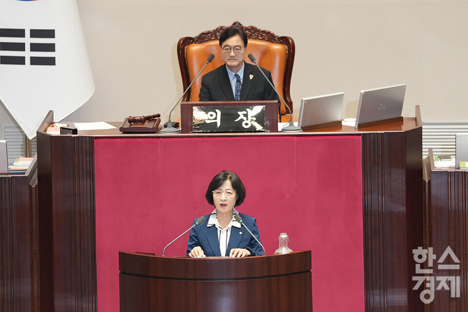 21일 서울 여의도 국회 본청에서 제428회 국회(임시회) 제1차 본회의가 열리고 있다. 추미애 신임 법사위원장이 당선 소감을 밝히고 있다. /최대성 기자 dpdaesung@sporbiz.co.kr 2025.08.21.