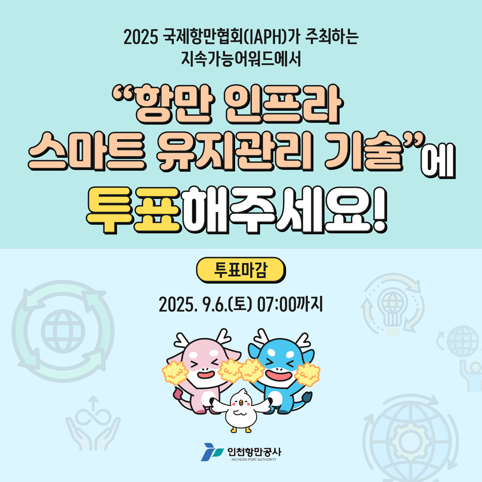 이벤트 참여는 IAPH 지속가능 어워즈 홈페이지에 접속한 후 인프라 부문(Infrastructure)의 ‘IPA 솔루션’을 클릭하면 된다. 참가자가 투표인증 화면을 인천항만공사의 응모폼에 업로드하면, 공사는 추첨을 통해 총 40명에게 5만 원 상당의 모바일 기프티콘을 제공할 예정이다.