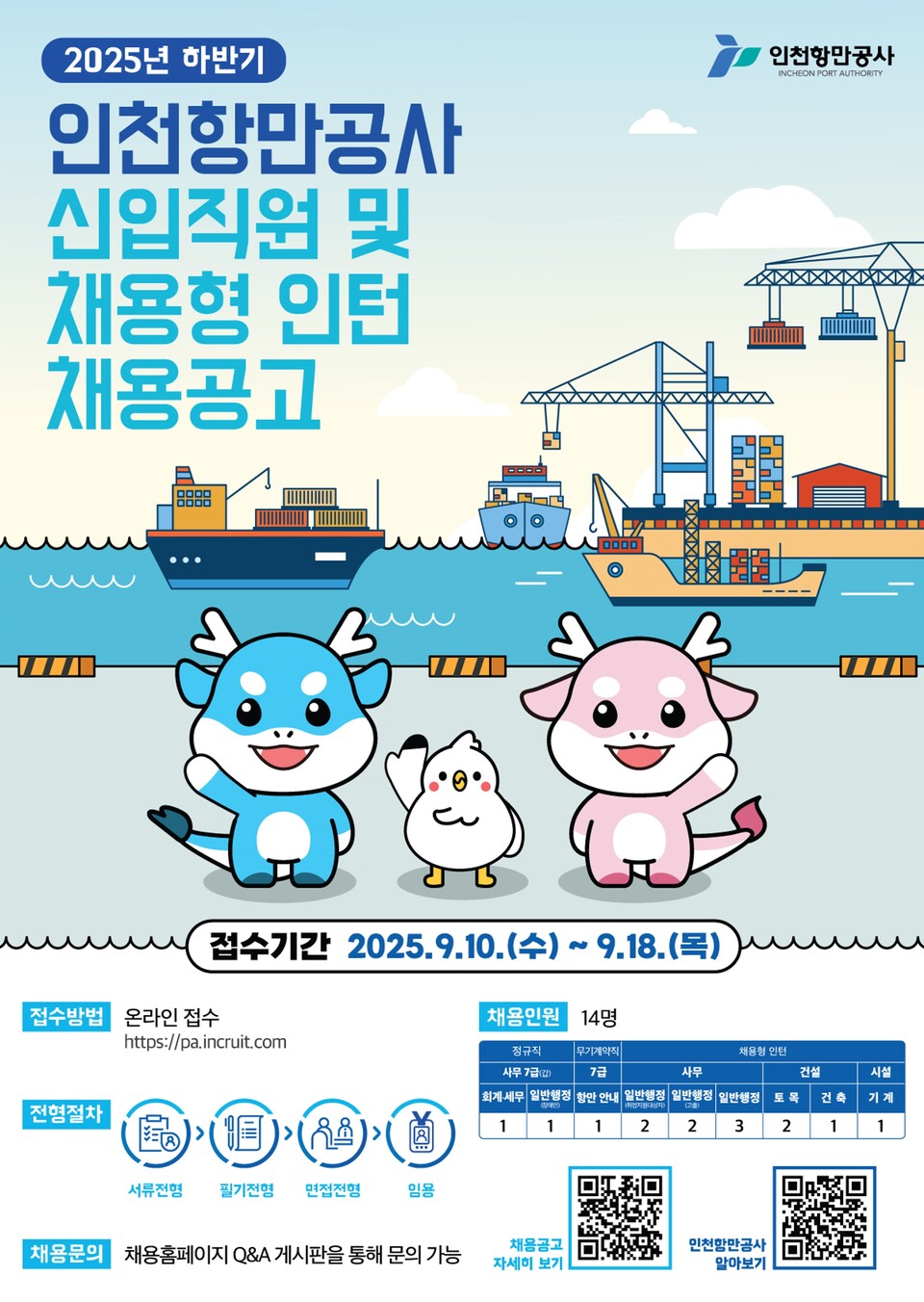 | 한스경제=신홍관 기자 | 인천항만공사가 전문성과 다양성을 갖춘 인재 확보를 위해 ‘2025년도 하반기 신입직원 및 채용형 인턴’을 채용한다.