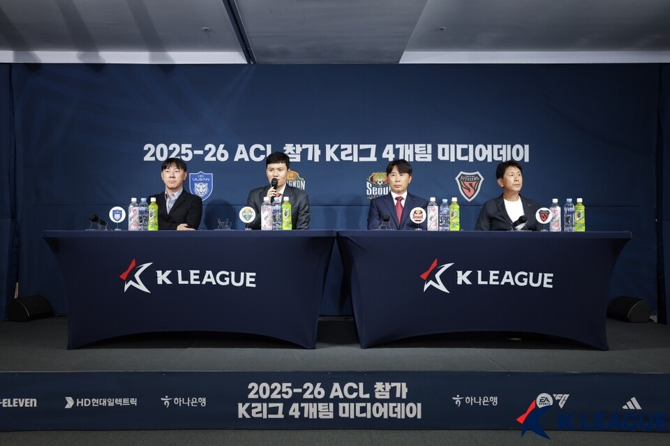 4일 서울 종로구 축구회관에서 2025-2026 아시아축구연맹(AFC) 챔피언스리그 엘리트(ACLE)·챔피언스리그 TWO(ACLT) 참가 K리그 4개 팀 미디어데이가 열렸다. 울산 HD, 강원FC, FC서울, 포항 스틸러스가 K리그를 대표해 아시아 무대에 나선다. 울산, 강원, 서울은 ACLE, 포항은 ACLT에 출전한다.